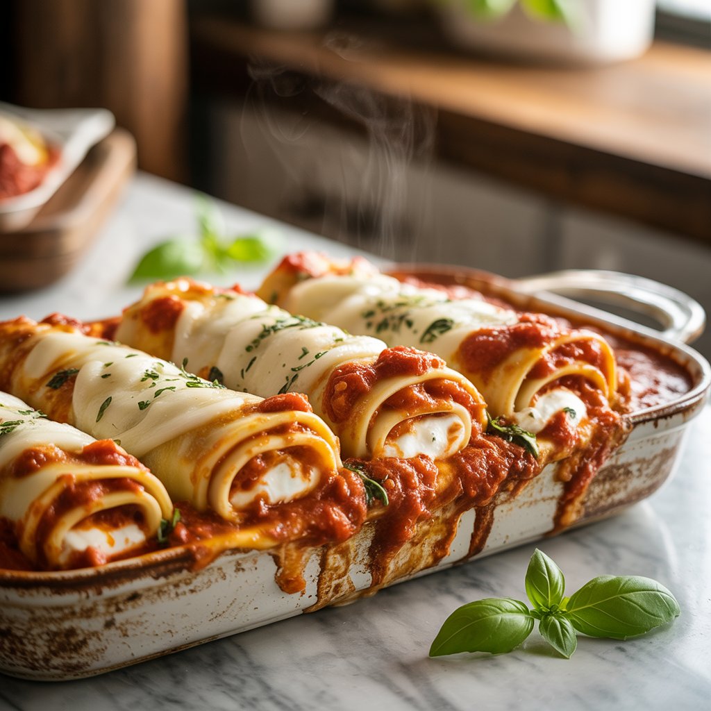 “Golden, cheese-stuffed lasagna rolls bubbling in marinara—ready in 30 minutes. The lazy hack that saved my weeknights!”
